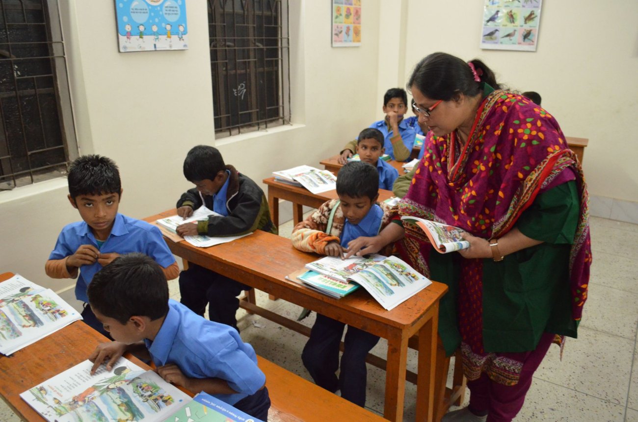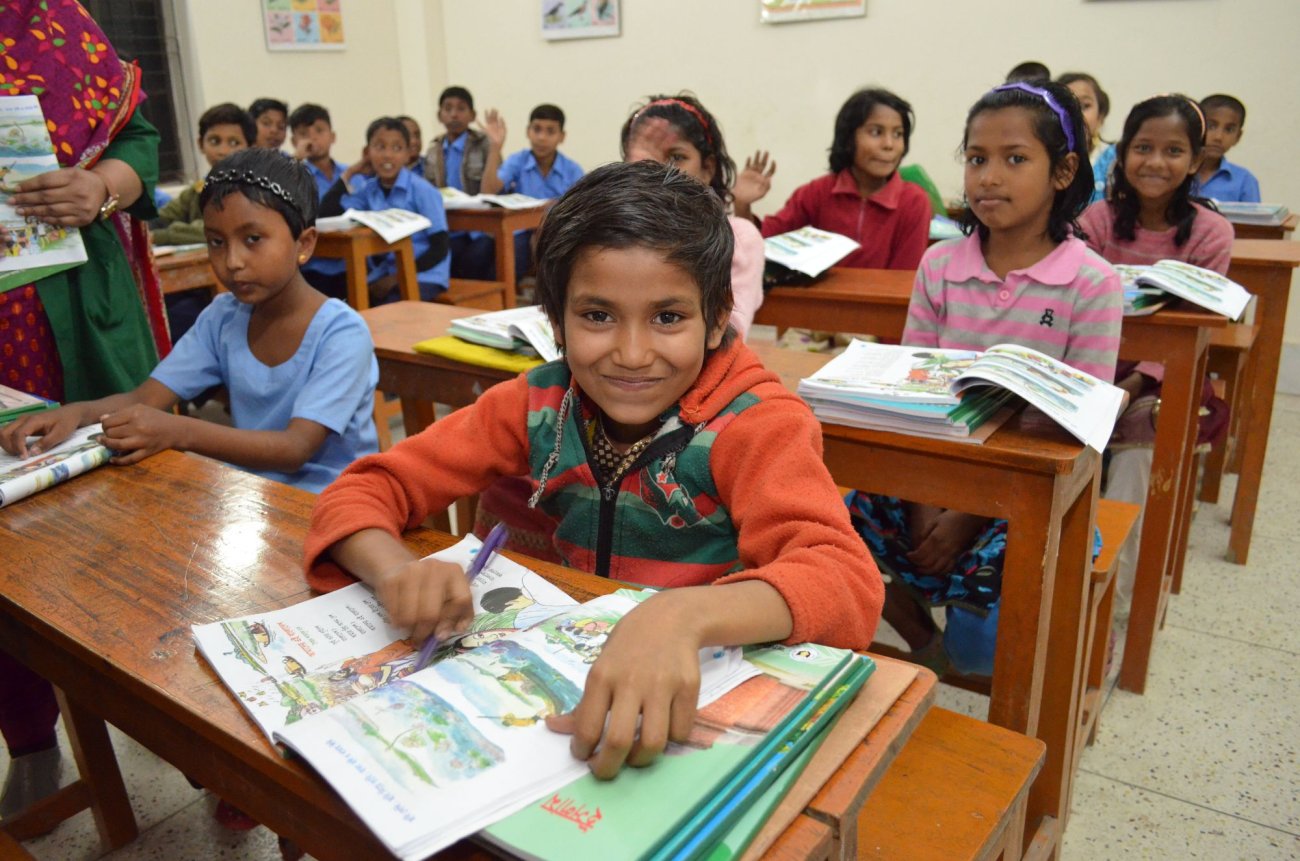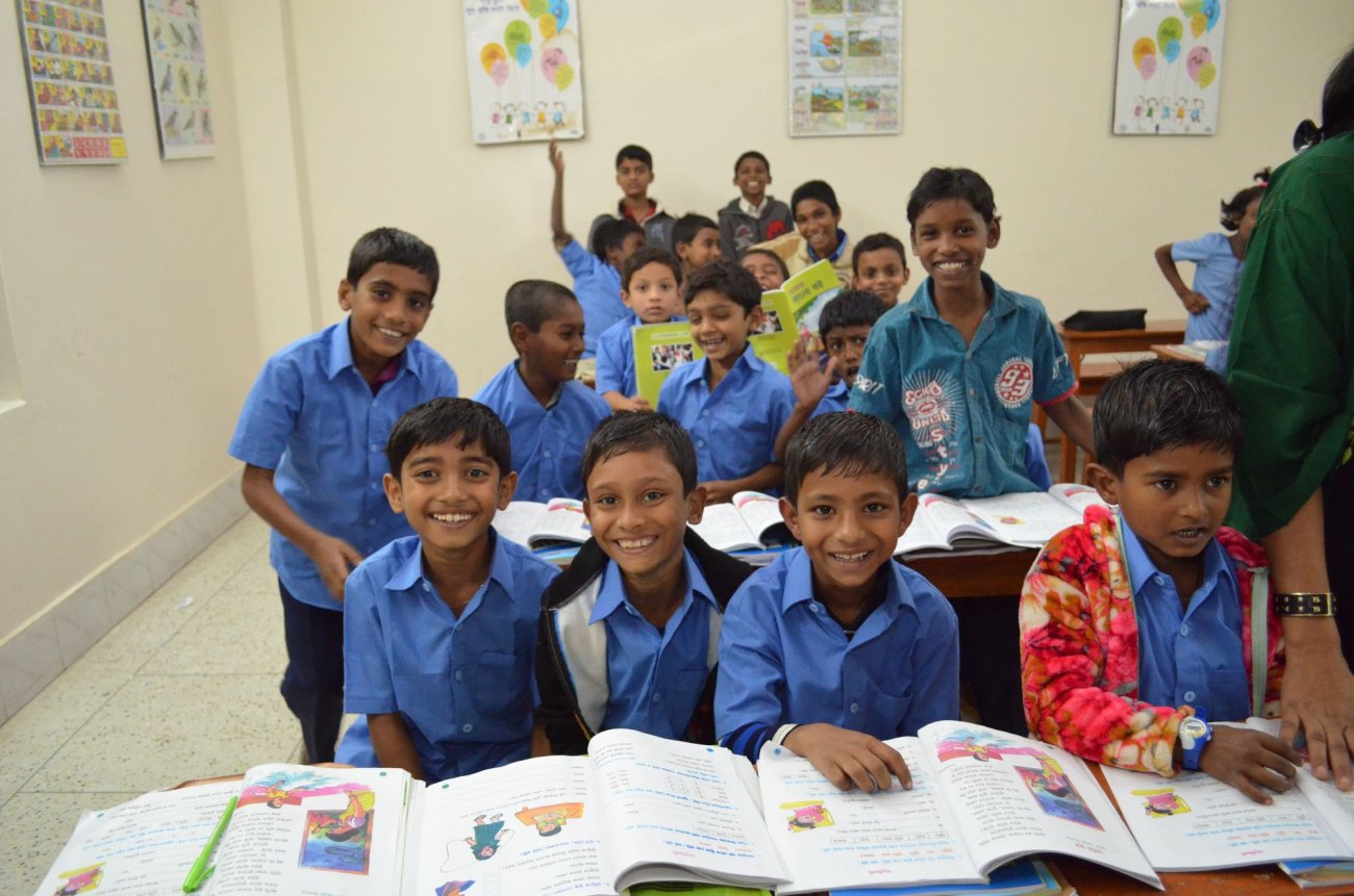 Unsere Partnerorganisation SSF hilft diesen Kindern, indem sie ihnen abends nach der Arbeit den Schulbesuch ermöglicht. „Um 18 Uhr kommen sie in die Thomas-Abend-Schule, dann wird es draußen langsam dunkel. Manche Kinder haben bis dahin schon bis zu zehn Stunden gearbeitet“, erklärt Dr. Mahfuz. Die Räumlichkeiten der Thomas-Abend-Schule sind hell und strahlen eine positive Atmosphäre aus. Fünf Klassen gibt es hier. „Normalerweise“, erzählt Dr. Mahfuz weiter, „besuchen im Durchschnitt 125 Mädchen und Jungen unsere Schule. Das ist eine große Chance für die Kinder, denn eine schulische Bildung ist der erste Schritt aus der Armut.“