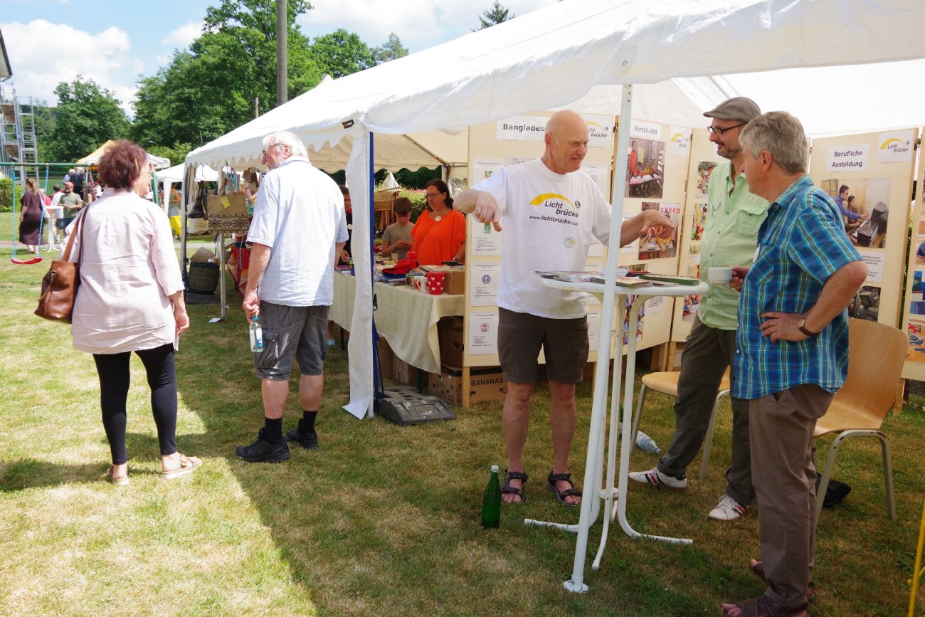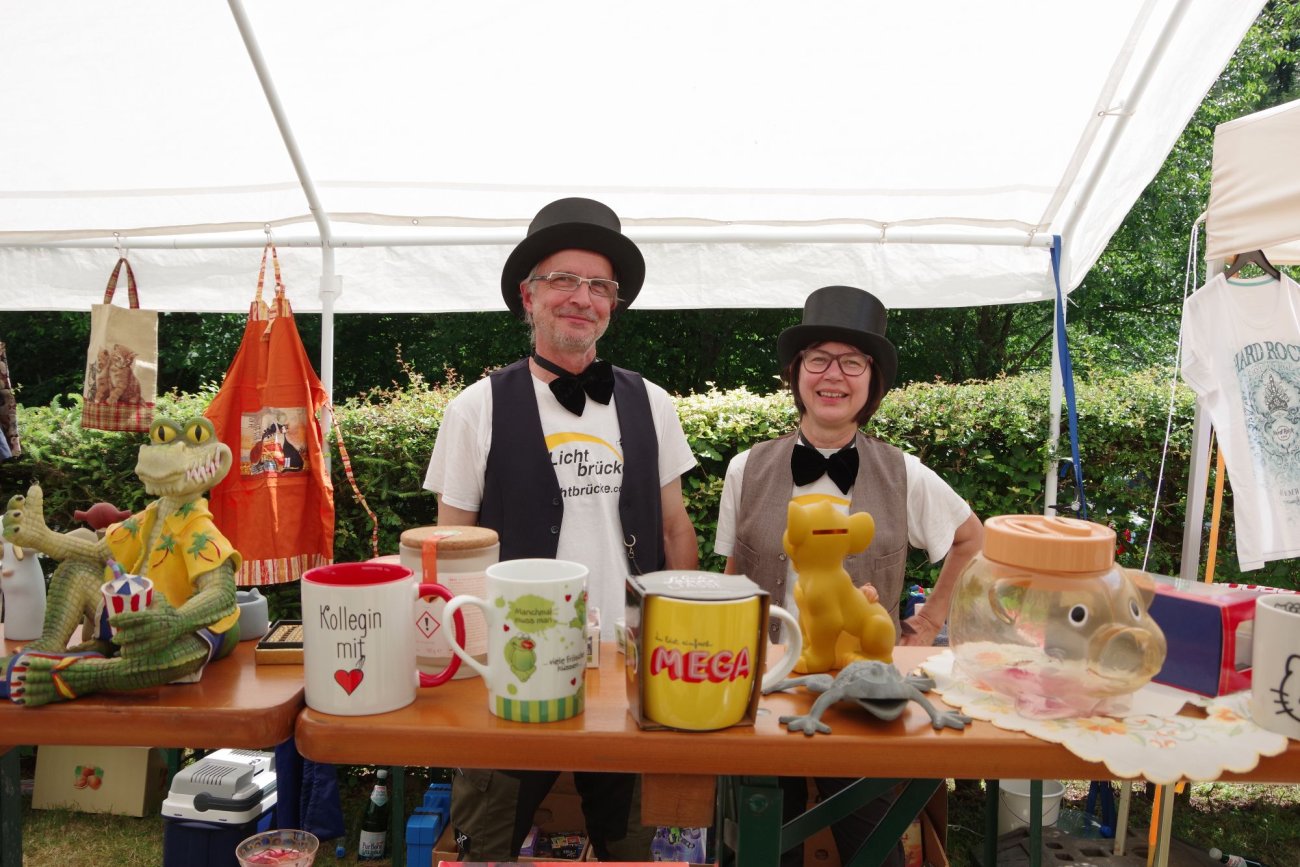 Die vielen Unterstützer der Lichtbrücke waren wieder mit vollem Einsatz dabei: Bei den verschiedensten Verkaufsständen gab es einiges zu entdecken und bei der Tombola und dem Glücksrad attraktive Preise zu gewinnen. Auch die kleinen Gäste konnten sich bei zahlreichen Spiel- und Mitmachaktionen am Bliesenbach austoben.