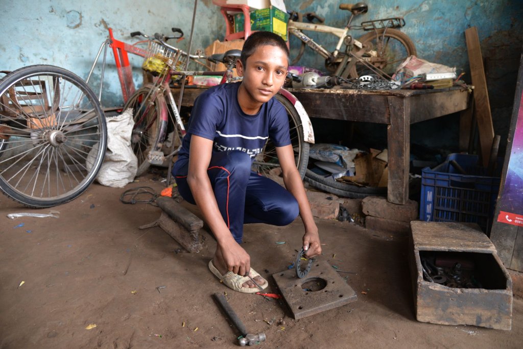 Israfil ist 13 Jahre alt und arbeitet in einer Fahrradwerkstatt in Satkhira. Zur Zeit von 9:00 Uhr morgens bis abends um 21:00 Uhr, sechs Tage die Woche, flickt er Reifen, repariert Bremsen und tauscht Ketten aus. Sein Lohn: 4.000 Taka (ca. 28,- Euro) im Monat. Als jüngster von vier Kindern hilft er zudem seiner Mutter, die als Haushaltshilfe arbeitet. Sein Vater verkauft aus Abfallmaterialien wiederaufgearbeitete Waren. Das knappe Einkommen der Familie reicht gerade so, um zurecht zu kommen. Trotz harter Bedingungen hat Israfil einen Traum: er möchte Techniker werden. Vor einem Monat gelang ihm ein wichtiger Schritt: parallel zur Arbeit schloss er die Thomas-Abend-Schule erfolgreich ab. Das neu erworbene Zertifikat eröffnete ihm die Chance, sich an der Technischen Schule zu bewerben. Jetzt wartet er auf die Zulassung und arbeitet in der Übergangszeit intensiv, um die zukünftigen Schulkosten zu stemmen. Israfils Traum rückt greifbar näher. Die Thomas-Abend-Schule hat ihm neue Perspektiven eröffnet und zeigt, wie Bildung selbst unter schwierigsten Bedingungen Selbstvertrauen und Hoffnung schafft.
